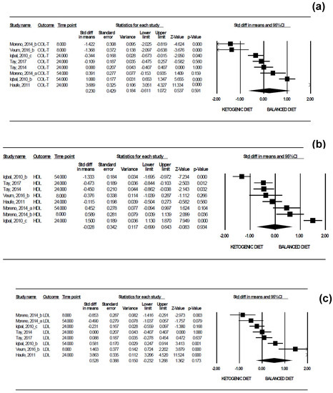 - Westman, E.C.; Yancy, W.S.; Olsen, M.K.; Dudley, T.; Guyton, J.R. Effect of a low-carbohydrate, ketogenic diet program compared to a low-fat diet on fasting lipoprotein subclasses. Int. J. Cardiol. 2006, 110, 212–216. [Google Scholar] [CrossRef] [PubMed]