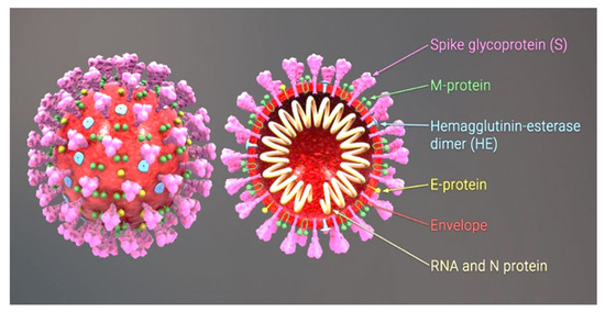 - English: 3D Medical Animation Still Shot Showing the Structure of a Coronavirus. 2020. Available online: https://www.Scientificanimations.Com/Coronavirus-Symptoms-and-Prevention-Explained-through-Medical-Animation/ (accessed on 3 August 2021).