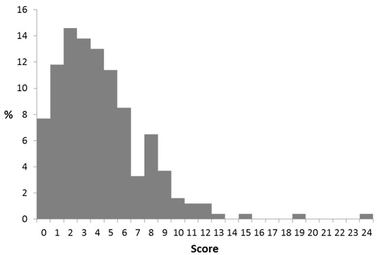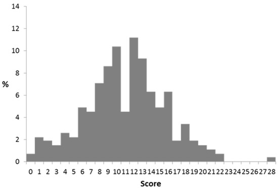 The CoMiSS was collected from the 268 subjects at the baseline visit. The score ranged from 0 to 28 (Figure 2).