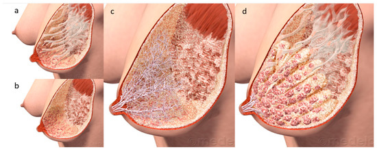 New understanding of the anatomy of the lactating breast. (a) Coopers ligaments (b) superficial and retromammary fat layers (c) milk duct system (d) macro anatomy of the breast. © Medela AG 2006. Used with permission.