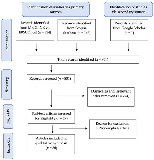 A literature search was undertaken to identify relevant articles related to the therapeutic potentials of curcumin in female reproductive disorders. Peer-reviewed and full-text English articles published from 2000 to March 2021 were gathered in electronic databases, including MEDLINE via EBSCOhost, Scopus and Google Scholar. The following keywords were used: (1) Curcumin and (2) PCOS or Endometriosis or Ovarian Disease. Only studies involving curcumin treatment on PCOS, endometriosis and ovarian disease were included for this review. The literature search was summarised in the flowchart in Figure 4.