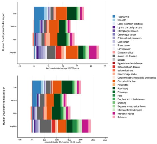 3.2. Alcohol-Attributable Burden of Disease by Human Development Index