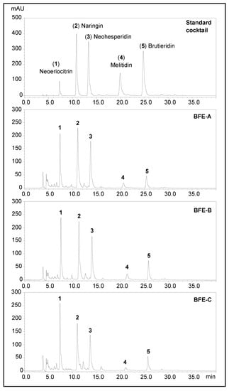 2.3. HPLC Analysis of Flavonoid Glycosides in BFE