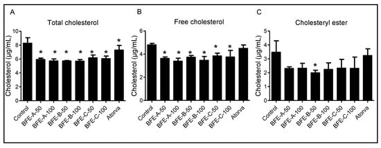 3.2. Effects of BFE on Cholesterol Content in HepG2 Cells