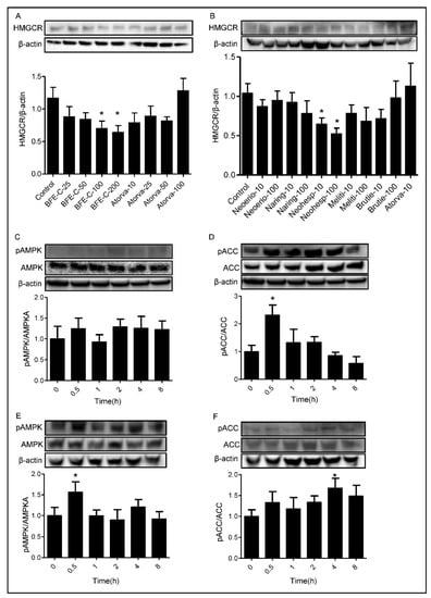 3.4. Effect of BFE and Its Principal Components on Cholesterol Biosynthesis Related Protein Expression