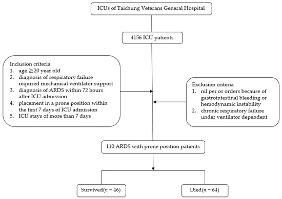 Fu, P.-K.; Chao, W.-C.; Hsu, C.-Y.; Wang, C.-H.; Wang, C.-Y. Caloric Intake with High Ratio of Enteral Nutrition Associated with Lower Hospital Mortality for Patients with Acute Respiratory Distress Syndrome Using Prone Position Therapy. Nutrients 2021, 13, 3259. https://doi.org/10.3390/nu13093259