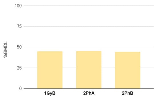 In the case of dietary supplements, As was determined in three capsulated products (1GyB, 2PhA, 2PhB), which were distributed by the same manufacturer. Figure 2 shows the ratio of EDI to BMDL0.5 value, assuming that the consumer will take the supplements according to the manufacturer recommendations (1 d.u./day, Table 2). Although the BMDL0.5 value was not exceeded, the obtained results (44–56% of BMDL0.5) indicate products’ contamination, and their consumption might be associated with a significant risk to the consumer.