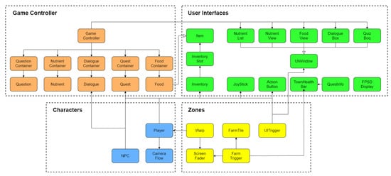 28]. Four scripting modules were required for this project and defined as: Game Controller, User Interfaces, Characters and Zones (see