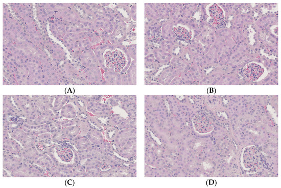 Figure 7. Histopathological changes in the kidneys of mice. (A) C, control group; (B) CD/RALA, R-α-lipoic acid γ-cyclodextrin complex group; (C) RALA, R-α-lipoic acid group; (D) CD, γ-cyclodextrin group.