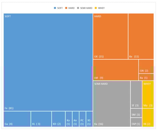 - EU Food Labelling Information System (FLIS) IT Tool for the Category of Cheeses. Available online: https://ec.europa.eu/food/safety/labelling_nutrition/labelling_legislation_en/food_labelling_information_system/start/results (accessed on 1 January 2021).