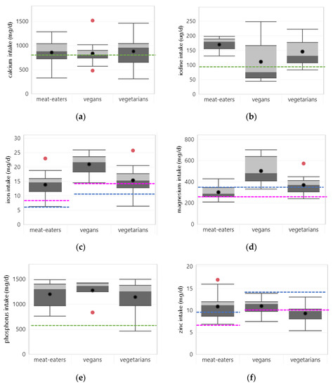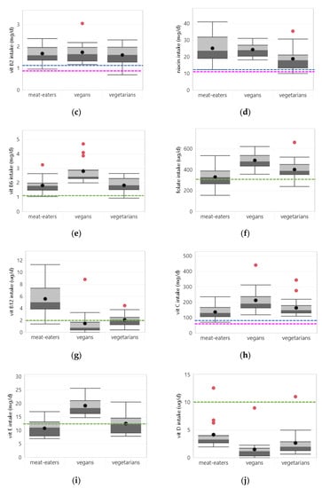 - Li, D.; Sinclair, A.J.; Mann, N.J.; Turner, A.; Ball, M.J. Selected micronutrient intake and status in men with differing meat intakes, vegetarians and vegans. Asian Pac. J. Clin. Nutr. 2000, 9, 18–23. [Google Scholar] [CrossRef]