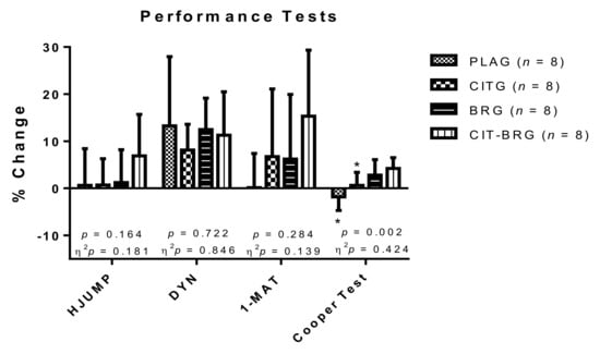- Pérez-Guisado, J.; Jakeman, P.M. Citrulline malate enhances athletic anaerobic performance and relieves muscle soreness. J. Strength Cond. Res. 2010, 24, 1215–1222. [Google Scholar] [CrossRef]