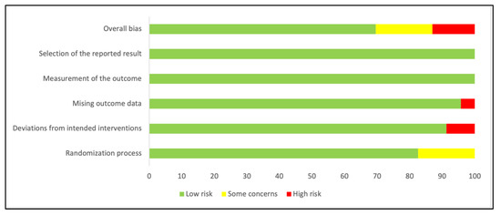 - Sterne, J.A.C.; Savovic, J.; Page, M.J.; Elbers, R.G.; Blencowe, N.S.; Boutron, I.; Cates, C.J.; Cheng, H.Y.; Corbett, M.S.; Eldridge, S.M.; et al. RoB 2: A revised tool for assessing risk of bias in randomised trials. BMJ 2019, 366, l4898. [Google Scholar] [CrossRef] [Green Version]