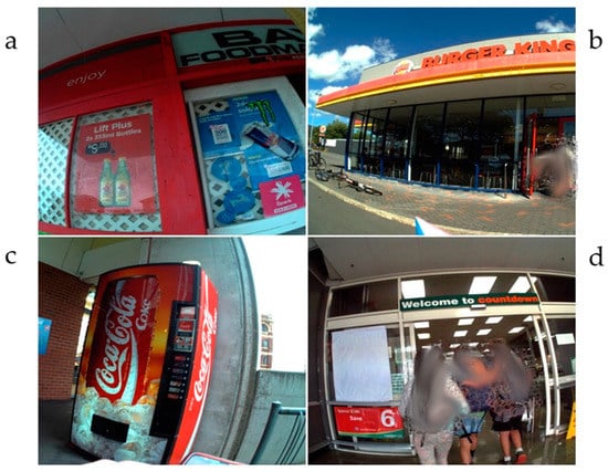 - McKerchar, C.; Smith, M.; Stanley, J.; Barr, M.; Chambers, T.; Abel, G.; Lacey, C.; Gage, R.; Ni Mhurchu, C.; Signal, L. Food store environment examination—FoodSee: A new method to study the food store environment using wearable cameras. Glob. Health Promot. 2020, 27, 73–81. [Google Scholar] [CrossRef]