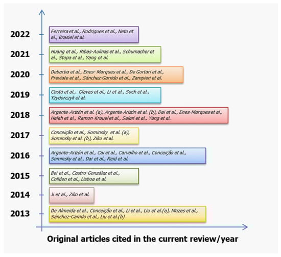 Original articles published per year, since 2013, using the litter size reduction model that was cited in the current review.