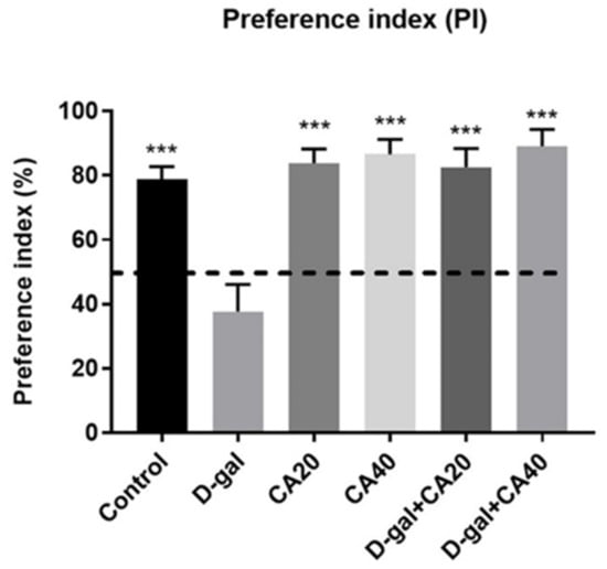 3.2. D-Gal Induced Memory Impairment in NOR Test Is Reversed by CA