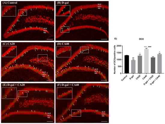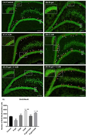 3.3. D-Gal Reduced Cell Proliferation in the Hippocampal Neurogenesis Is Reversed by CA