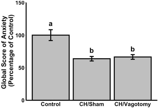 3.1. Evaluation of Anxiolytic Properties of CH after Oral Administration in Vagotomised Rats