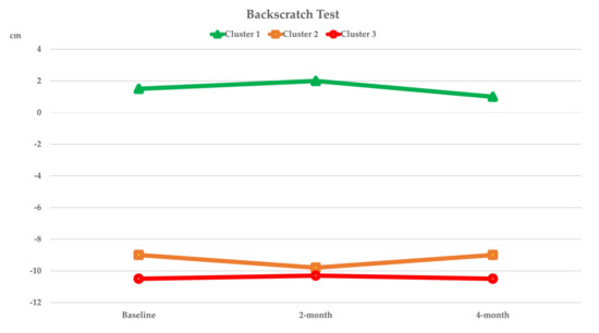 Within-cluster comparison results suggest that increased diet quality contributed to the enhancement of cardiorespiratory endurance and nutritional status among participants with higher dietary intervention compliance. A tendency toward improvement in HGS was observed in the highest dietary intervention compliance cluster at two-month of intervention but decreased at the four-month of intervention. After adjusting for baseline values and covariates, only TMS remained significantly improved among participants with improved diet quality over time. Our result aligns with previous work done by Chan and colleagues which suggested better diet quality was independently associated with higher seven-year cardiorespiratory fitness [57]. Besides, a greater significant improvement in lower extremities flexibility was observed. Performance on CST among participants with the highest dietary intervention compliance was significantly improved at two-month of intervention but the improvement did not sustain through four-month of interventions. After controlling for covariates, a significant intervention effect was observed in GS. A decreased performance over time, on the other hand, was observed in CST across clusters. Emerging evidence indicates the promising synergetic effect of combined nutrition and exercise intervention in muscle function and locomotor capacity strengthening [58,59]. The absence of exercise training may be the explanation for the lack of interventional effect on locomotor capacity in our study. Nonetheless, it is worth mentioning that enhanced TMS performance may be considered an improvement in the locomotor capacity, as cardiorespiratory endurance is considered a potential indicator of locomotion due to its reliability in predicting cardiorespiratory function and functional capacity in mobility [60].