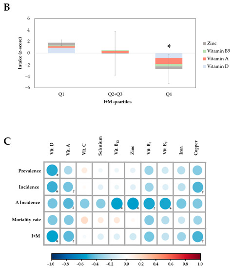 3.2. Intake of Essential Micronutrients for the Immune System at the National Level