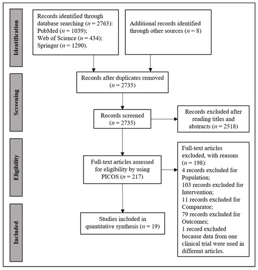 - Higgins, J.P.T.; Thomas, J.; Chandler, J.; Cumpston, M.; Li, T.; Page, M.J.; Welch, V.A. (Eds.) Cochrane Handbook for Systematic Reviews of Interventions, 2nd ed.; John Wiley & Sons: Chichester, UK, 2019. [Google Scholar]