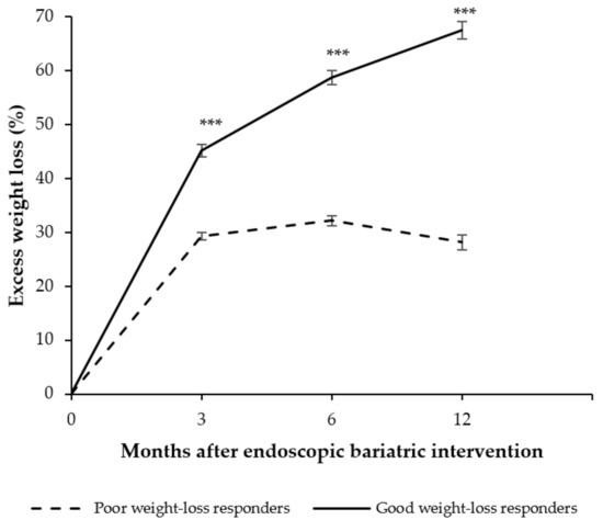 | Poor Weight Loss-Responders | Good Weight Loss-Responders | p-Value | |