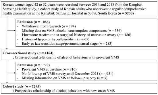 Kwon, R.; Chang, Y.; Kim, Y.; Cho, Y.; Choi, H.R.; Lim, G.-Y.; Kang, J.; Kim, K.-H.; Kim, H.; Hong, Y.S.; et al. Alcohol Consumption Patterns and Risk of Early-Onset Vasomotor Symptoms in Premenopausal Women. Nutrients 2022, 14, 2276. https://doi.org/10.3390/nu14112276