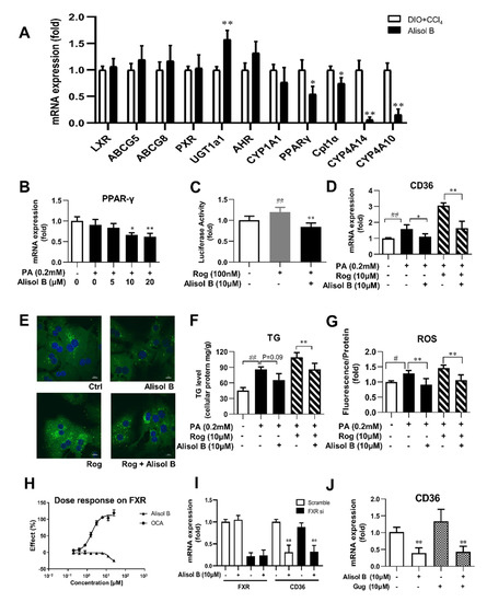 3.6. Alisol B Decreased CD36 Expression through Downregulating PPARγ, and This Effect Was Independent of FXR
