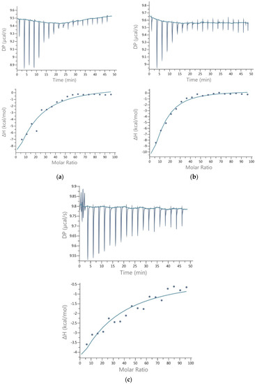 Calorimetric titration was conducted in triplicate. Statistical analysis was based on the determination of the average values of three measurements and their standard deviation, as well as one-way ANOVA (analysis of variation), using Statistica 10.0 software (StatSoft, Kraków, Poland) at the significance level p < 0.05.