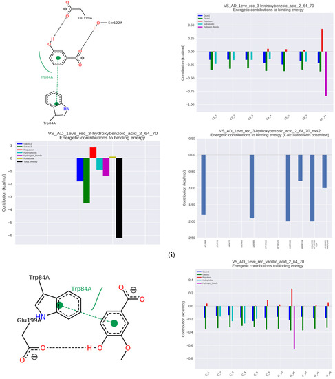 The influence of the presence of methyl groups on the interactions of hydroxybenzoic acids with AChE was further analyzed. Vanillic acid (4-hydroxy-3-methoxybenzoic) showed weaker interactions of the hydrogen bond type than protocatechuic acid (dihydroxy-derivative), due to the blocking of the hydroxyl group with a methyl substituent.