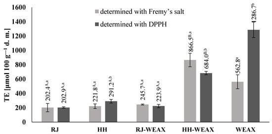 | mg 100 g−1 d.m. | Honey | Royal Jelly | HH-WEAX | RJ-WEAX | WEAX | |