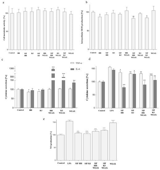 2.6.4. Determination of TNF-α, IL-6, and Nitric Oxide Secretion