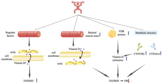 How resistance training may exert its effect on 25(OH)D in various ways is briefly illustrated in Figure 2.