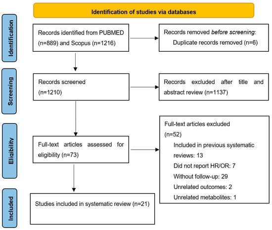 - Ruiz-Canela, M.; Hruby, A.; Clish, C.B.; Liang, L.; Martínez-González, M.A.; Hu, F.B. Comprehensive Metabolomic Profiling and Incident Cardiovascular Disease: A Systematic Review. J. Am. Heart Assoc. 2017, 6, e005705. [Google Scholar] [CrossRef] [Green Version]