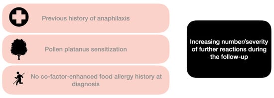 Moreover, we aimed to recognize at the diagnosis the presence of possible predictive/predisposing clinical or laboratory data to further new food reactions (LTP basophils activation test levels, total levels of serum IgE, allergic comorbidities, co-sensitization to other panallergens).