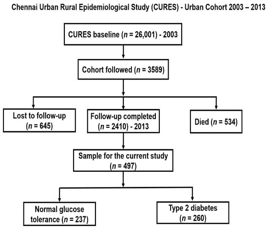 - Deepa, M.; Pradeepa, R.; Rema, M.; Mohan, A.; Deepa, R.; Shanthirani, S.; Mohan, V. The Chennai Urban Rural Epidemiology Study (CURES)--study design and methodology (urban component) (CURES-I). J. Assoc. Physicians India 2003, 51, 863–870. [Google Scholar] [PubMed]