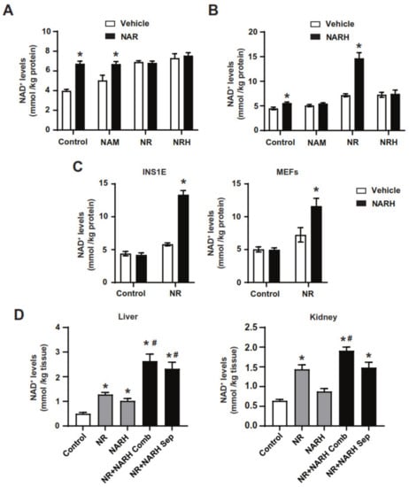 - Yang, Y.; Mohammed, F.S.; Zhang, N.; Sauve, A.A. Dihydronicotinamide riboside is a potent NAD+ concentration enhancer in vitro and in vivo. J. Biol. Chem. 2019, 294, 9295–9307. [Google Scholar] [CrossRef] [PubMed]