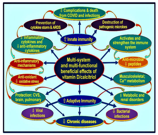 Sometime during the year, over half of the world’s population is subjected to vitamin D deficiency, thus increasing their vulnerability to infections, and worsening chronic diseases []. Because hypovitaminosis is D-associated adverse effects affecting multiple systems, we estimated that it contributes to a fourth of the overall healthcare costs. In contrast, the population’s vitamin D sufficiency improves the overall health of individuals and the population and significantly lower healthcare costs. In minority ethnic groups and vulnerable populations, vitamin D status can be improved with the targeted, adequate fortification of staple foods with cholecalciferol (D3) (and other micronutrients).