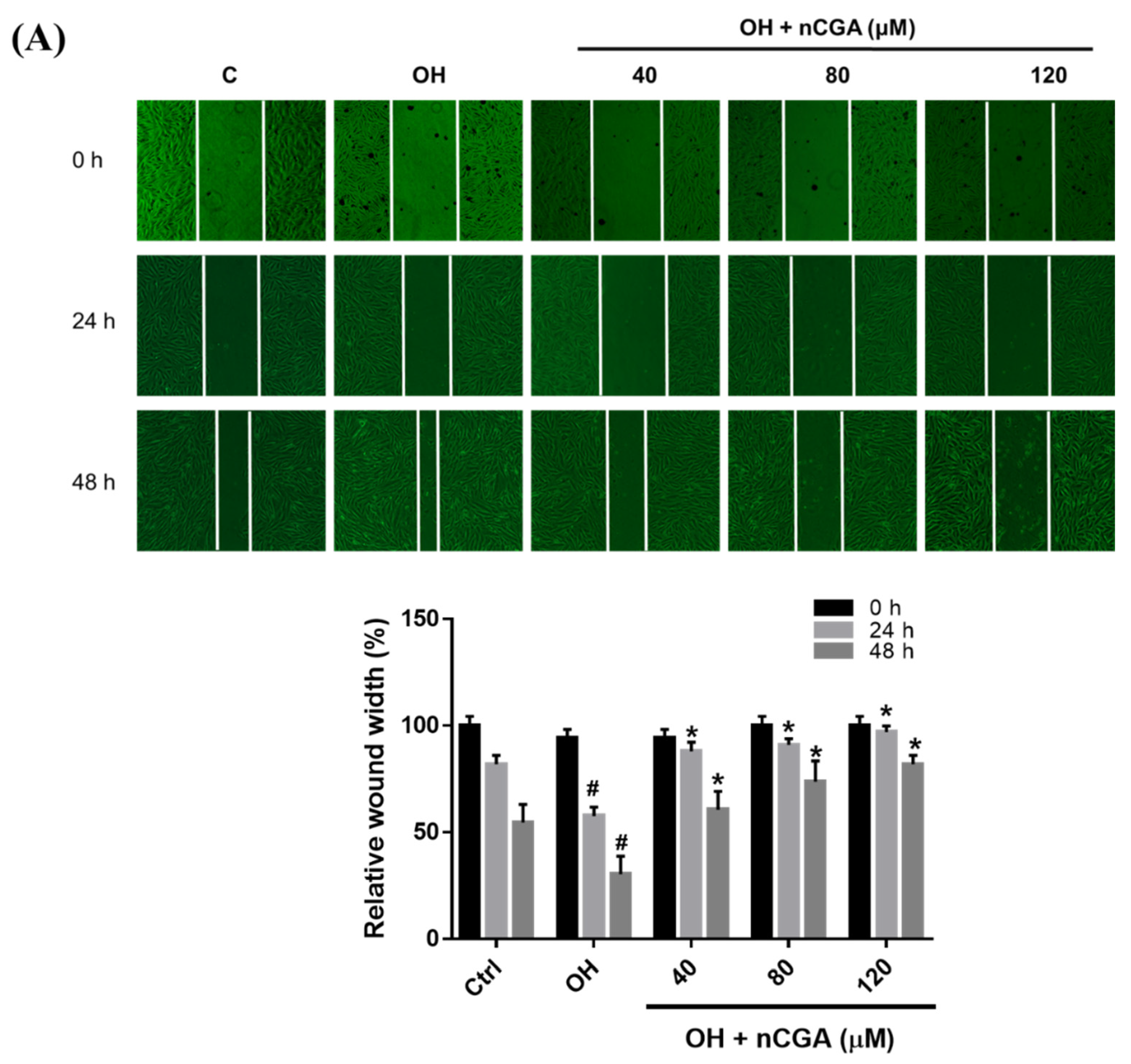 2.2. MLE and nCGA Inhibit the Migration of VSMCs Cultured in OH