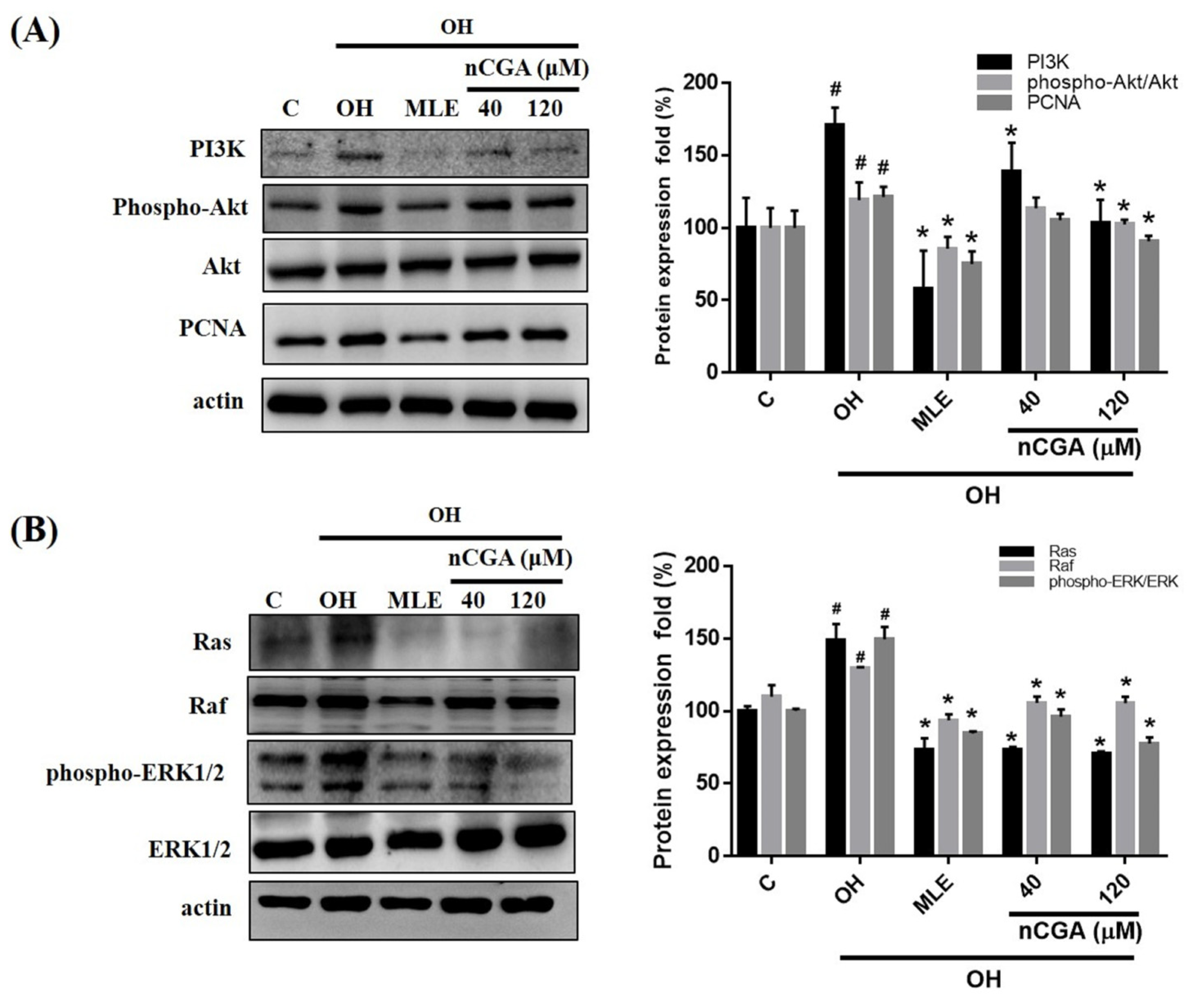 2.4. MLE and nCGA Inhibit Proliferation Related Proteins in OH Cultured VSMCs