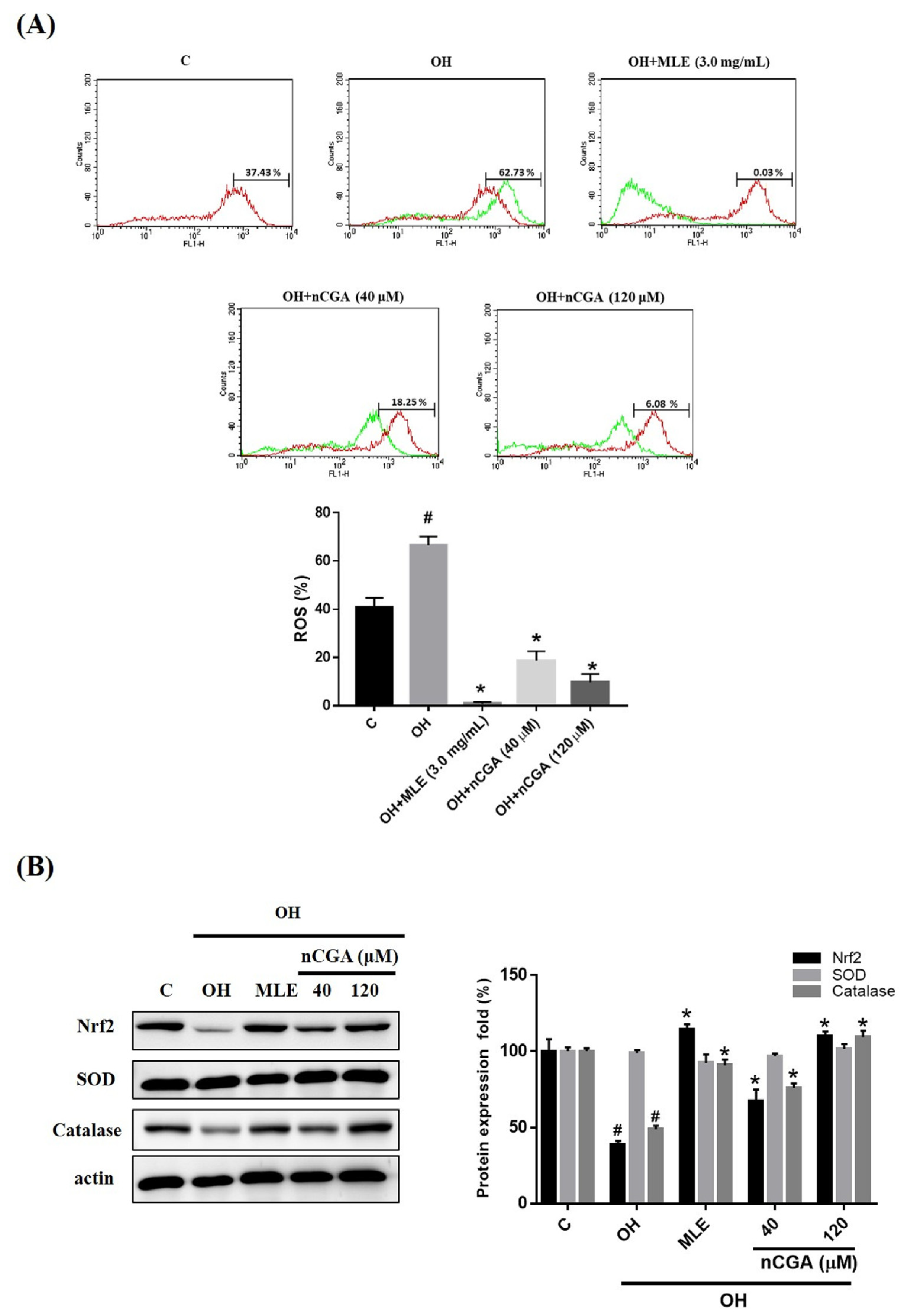 2.5. MLE and nCGA Decreased Levels of OH-Induced ROS