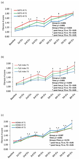 - Koo, D.J.; Lee, M.Y.; Jung, I.; Moon, S.J.; Kwon, H.; Park, S.E.; Rhee, E.J.; Lee, W.Y. Baseline homeostasis model assessment of insulin resistance associated with fibrosis progression in patients with nonalcoholic fatty liver disease without diabetes: A cohort study. PLoS ONE 2021, 16, e0255535. [Google Scholar] [CrossRef] [PubMed]