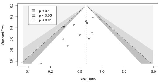 The funnel plot (Figure 7) did not show a significant asymmetry.