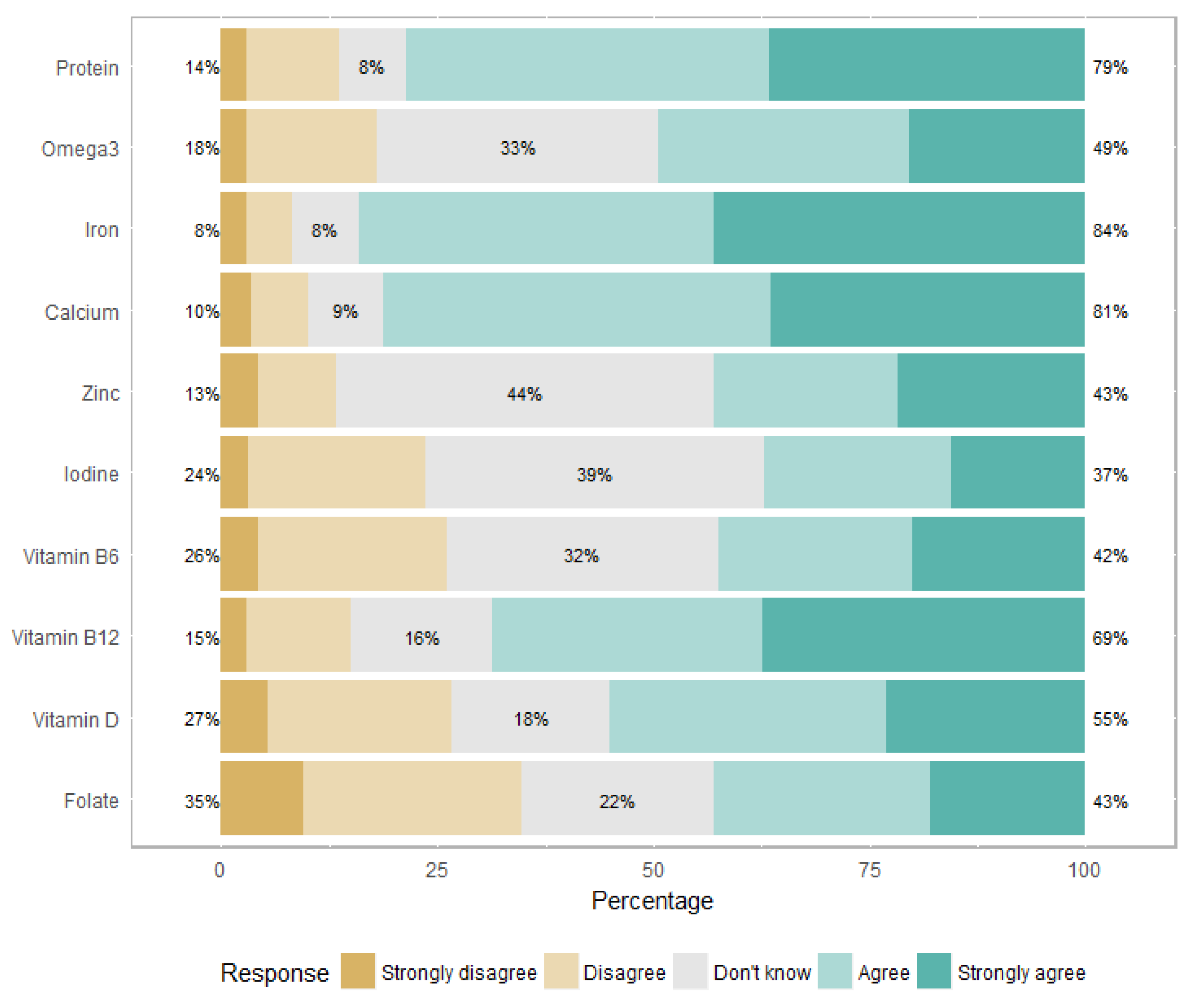 Perceived risk of deficiencies related to an ovo-lacto-vegetarian (OLV) diet.