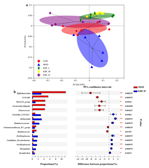 3.6. Effect of the KBF on Regulation of Gut Microbiota