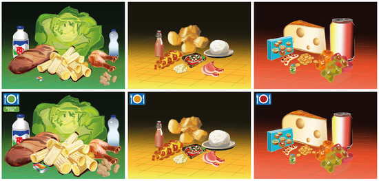 - Ducrot, P.; Julia, C.; Méjean, C.; Kesse-Guyot, E.; Touvier, M.; Fezeu, L.K.; Hercberg, S.; Péneau, S. Impact of different front-of-pack nutrition labels on consumer purchasing intentions: A randomized controlled trial. Am. J. Prev. Med. 2016, 50, 627–636. [Google Scholar] [CrossRef]