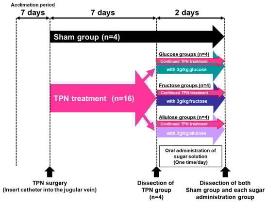 - Suzuki, T.; Mayamagi, Y.; Keta, A.; Kasahara, A.; Sato, A.; Takahashi, T. Oral administration of fructose improves jejunal villous morphology and nutrient digestion and absorption capabilities in a rat model of total parenteral nutrition. Biomed. Res. Clin. Pract. 2019, 4, 1–8. [Google Scholar] [CrossRef]