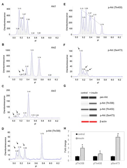 3.2. Insulin Induces Changes to the Electropherograms of Akt2 and Akt3