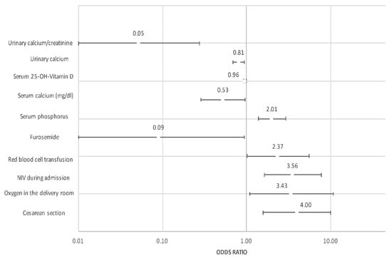 Regarding the association between HPTH, birth by cesarean section, and anemia, a possible explanation relating to these factors could be the fact that cesarean-delivered newborns usually have cord clamping earlier than those born by vaginal delivery, which has been associated with lower hemoglobin levels, and, consequently, lower Fe storage []. The situation of clinically relevant anemia may favor postnatal growth restriction and thus an increased risk of MBD and/or HPTH []. In addition, the situation of iron overload to which a polytransfused newborn is exposed to can have an influence on phosphorus–calcium metabolism, similar to what occurs in cases of hemochromatosis, which was previously described in relation to MBD [].