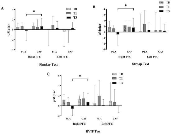 2Hb concentration was computed and averaged at baseline and over the whole of each single cognitive test (i.e., EFT, ST, and RVIPT) at three time points (i.e., T0, T1, and T3). Similar to cognitive function tests performance, the mean O